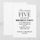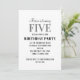 A simple minimalist fifth birthday party invitation template, you can create your own, with an editable black and white, minimalist, minimal modern, cute whimsical, typography, with calligraphy script, basic