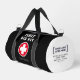 Enhance your safety with our sleek, modern black, red and white first aid travel duffle bag, designed as a compact lifesaver for emergencies. Personalise your medical information on both the front and back for swift identification. On the left side, tailor the medical centre logo, name, and emergency number to your preference—all texts and the logo can be customised or deleted as needed. With customisable options, you have full control. Adorned with a striking red and white cross, this kit blends functionality with style, making it a standout accessory. Versatile and reassuring, it's the ultimate companion for every journey, ensuring you're prepared for any unforeseen medical situation.