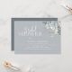 This design features watercolor floral foliage dusty blue, a QR code with map directions for online, bridal shower event, modern elegant calligraphy script font, simple elegant botanical greenery rose, modern simple minimalist typography font, fall winter summer spring style, romantic soft elegance simplistic, web address add your URL, the night before