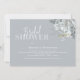 This design features watercolor floral foliage dusty blue, with a QR code gift registry online, website URL store register, modern elegant calligraphy script font, a simple elegant botanical greenery rose, modern simple minimalist typography font, fall winter summer spring style, romantic soft elegance simplistic, floral bridal shower invitations, a bridal shower with gift registry