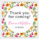 Pink and orange simple floral elegant script wedding thank you favour stickers with pink font for your wedding reception, rehearsal dinner and bridal shower.