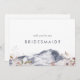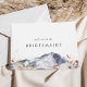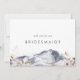 This simple floral mountain bridesmaid proposal card is perfect for an outdoor wedding. The modern minimalist design features a navy blue watercolor mountain with blush pink moody fall wildflowers. Customise the card with the name of the bride and the bridesmaid. Personalise the back of the card with a personalised message.