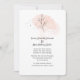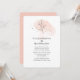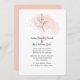 Minimalist wedding invitation, done in white with a splash of blush peach watercolor, at the top, with a simple black floral decoration. The back is done in a solid blush peach. Personalise the dark charcoal text for your special day.