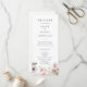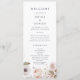 This simple floral wedding program is perfect for a rustic wedding. The whimsical boho design features rustic blush pink, burgundy and marsala flowers with a moody and romantic tone. Include the name of the bride and groom, the wedding date and location, thank you message, order of service, bridal party and an optional "in loving memory" memorial.
