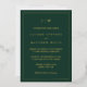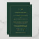 Simple Wedding Invitation featuring a modern yet elegant design with your two letter monogram at the top and your details surrounded by a thin border. This design is printed with real gold foil over a forest green background. A chic and stylish design that is great for a minimalist couple.