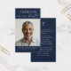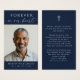 Keep the memory of a loved one close with this custom color personalized prayer card (shown in navy blue) featuring one treasured photo, the title FOREVER IN OUR HEARTS, name and dates on the front and an editable heartfelt remembrance message accented with a simple cross on the back. With its simple yet elegant classic design and modern handwritten typography, it makes a meaningful keepsake to share at a funeral, memorial service or Celebration of Life and offers comfort and a lasting tribute for family and friends. Its small and portable size of 3.5x2" (wallet-sized) makes it convenient for loved ones to carry it with them as a reminder of your loved one’s life and spirit. Personalization makes each card unique.