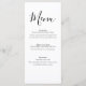 Present your reception dinner in timeless style with this minimalist elegant wedding menu featuring a graceful script title and refined serif typography. The clean black and white design offers a sophisticated layout that highlights each course while maintaining a modern, uncluttered aesthetic.