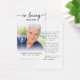 Keep the memory of a loved one close with this custom personalized prayer card featuring one cherished photo, the sentiment IN LOVING MEMORY, name and dates on the front and an editable heartfelt remembrance message you can change to a meaningful poem or bible verse. With its simple yet classic black and white design and modern script typography, it makes a thoughtful keepsake to share at a funeral, memorial service or Celebration of Life and offers comfort and a lasting tribute for family and friends. Its small and portable size of 3.5x2" (wallet-sized) makes it convenient for loved ones to carry it with them as a reminder of your loved one’s life and spirit. Personalization makes each card unique.