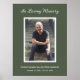 A simple green memorial welcome poster features "In Loving Memory" with your loved one's photo, name, birth-death dates. Order PRINTED and/or INSTANT DOWNLOAD to have printed yourself. MATCHING items in our collection.
