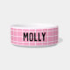 Modern, geometric dog bowl in a minimalist grid pattern. This item comes in a girly, bright pink customisable with the pets name. Ideal gift for the pet owner in your life. Personalised to make a thoughtful gift in a gorgeous bright pink colour way.