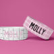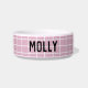 Modern geometric monochrome grid pattern girly pink customisable pet bowl, cute accessory. Ideal gift for the pet owner in your life, personalised with names in a pink colour wat.