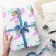 Simple glitter pink blue mothers day add name phot wrapping paper