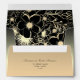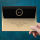 Simple, elegant, modern black and gold wedding 5x7 envelope with luxury floral inside, return address and monogram at the top back.