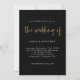 Simple Gold Black Script Wedding Invitation. An elegant set typography is in gold for the main heading the Wedding Of complementing the rest of the text which you can easily personalise with a classic black background on the front and coordinating gold background on the back.