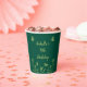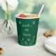 Unique simple paper cup featuring romantic and elegant gold flowers and butterflies on emerald green background