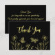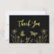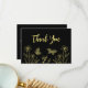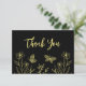 Unique simple wedding thank you card featuring romantic and elegant gold flowers on black background