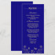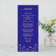 Unique simple wedding menu featuring romantic and elegant gold flowers on royal blue background