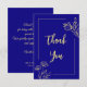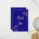 Simple gold flower royal blue wedding thank you card
