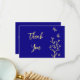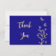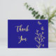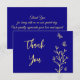 Unique simple wedding thank you card featuring romantic and elegant gold flowers on royal blue background