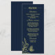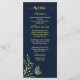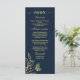 Unique simple wedding menu featuring romantic and elegant gold flowers on navy background