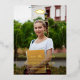 Vertical graduation celebration save the date postcard with gold foil text and a photo of the graduate. The text is printed in gold foil inside a gold foil arch overlay atop your photo with a golden graduation cap. Your name and graduation details in a combination of an elegant font and a romantic script. Frame your save the date photo and graduation details with a simple printed gold foil arch and send your save the dates to your graduation party guests with this gold foil postcard.