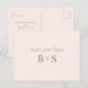 Simple Gold Monogram Blush Wedding Save the Date Postcard