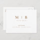 Simple Gold Monogram White Save the Date Announcement Postcard