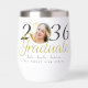 This trendy, fancy 2023 graduation Wine Tumbler features a photo overlaid with an elegant script. The text Graduate is written with faux gold metallic letters with rhinestones (no real rhinestones or gold foil will be used). You can adjust the wording, and change the fonts as needed, both on the front and back of the product. Choose this stylish and classy graduation design for the class of 2024!
