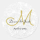 Simple Gold White Black Elegant Wedding Monogram Classic Round Sticker