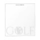 Simple golf fan personal stationery. Custom name/text area centred at top. Golf text with embedded male golfer silhouette in light grey at bottom. Contact for assistance in personalising or for any customisations to fit your need.