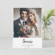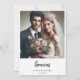 In the front of this gracias card, a cherished photo takes centre stage, capturing a beautiful moment from your special day. The word "gracias" is delicately scripted in calligraphy, adding an artistic touch. Personalise with names and date to make each card uniquely yours.