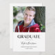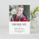This modern graduation photo card features simple typography and a large photo. A horizontal photo of the graduate is at the top, with the word "Graduate" written in trendy capital lettering below. Underneath the typography, add the graduate's name in script calligraphy, with the school and graduation year at the bottom of the card. The typography is black against a white background. The back of the graduation card includes an optional template to add graduation party details.