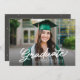 With a simple script "graduate" in a modern handwritten style, this two-photo graduation announcement and invitation is the perfect way to celebrate your grad. Featuring one horizontal photo on the front with white type, this design also has room on the neutral slate grey back to include a second photo a graduation party details. It's a stylish graduation design perfect for girls and guys and works well for high school graduation and college graduates. This grad party invite by Lea Delaveris Design is also available as a digital download. Find more styles in the collection.