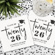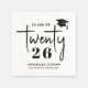 This simple and modern graduation party paper napkin features a clean, minimalist layout with a graduation cap accent placed at the top right. “Class Of” appears in classic serif typography, while the word “Twenty” is written in a flowing handwritten script. The number “26” is tucked just beneath the script text, also in a serif font, creating a unique and stylish way to display “Class of 2026.” Below, the graduate’s name and school are shown in matching serif fonts for a polished, cohesive look.