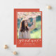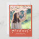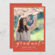 Send your family and friends a unique personalised photo graduation announcement to wow them. This modern template design features your photo framed in blue and below in white script is the word "Graduate" with your name, school and year to personalise on an orange background. The back of the card has an image of a white grad cap and "Class of 20XX" in simple white typography. Designed by artist ©Susan Coffey.