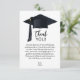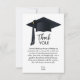 Black grad cap and tassel highlight your personalised graduation thank you message on these flat note cards.