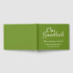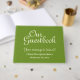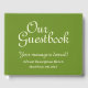 This subdued event guestbook features the messages "Our Guestbook" and "Your message is desired!", along with a personalised event/occasion date and description. The text is coloured beige, and the background is coloured green. A generic, customisable guest book like this could perhaps be used at an event such as a birthday party, a retirement party, a wedding anniversary celebration, a baby shower, or some other event with guests who may want to leave a message.