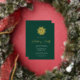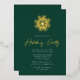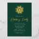Modern foil holiday party invitations featuring a gold foil snowflake at the top of the design with a festive green background. "Holiday Party" is displayed in a handwritten gold foil script. Personalise the foil snowflake holiday party invitations with your party details in white lettering.