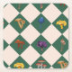 A simple pattern of green checks and mushrooms. Hand drawn.