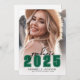Classic Minimalist Graduation Announcement & Party Invitation. The front features a full-page photo with a white gradient at the bottom that fades seamlessly into the image. Over the gradient, "2025" appears in a bold, classic school-style font in green. Above the year is "Graduate" in a script font, which can be changed to "Class of" if preferred. Below the year, the graduate's name and school name are elegantly featured. The current design uses black and green tones for a timeless and sophisticated look, but all colours can be customised to match school colours or personal preferences.