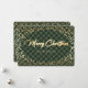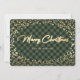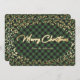 Simple green buffalo plaid and gold Christmas cards featuring a faux gold calligraphy title on a black and green checkered background. Easily personalize these simple Christmas cards with your family name and text.