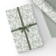 Beautiful wrapping paper with hand painted watercolor pattern featuring pale sage green leaves on a clean white background.