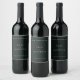 This modern wedding wine label template with a dark green background features your names, and your custom wedding message.