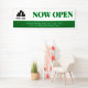 Simple open for business banner in a minimal green and white design with NOW OPEN written in large letters. Add your logo and additional text as needed.
