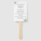 These fans were exactly as pictured. The quality is great. Perfect favor for a wedding!...I will make assembly a little easier by using a hot glue gun and finish them off with a ribbon. Beautifully printed. Crisp and clear text.