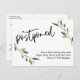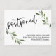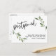 The front features a graphic header I designed using a modern, casual handwriting font, that reads "Postponed". Lower, there is a cheerful message you can edit, which declares your news: "We're Still Getting Married! Right Now We're Just Not Sure When it Will Happen." Accented with two watercolor sprigs of greenery, all layers were added separately and left unlocked to give you maximum design control. Use the template fields to add your personal details and change any of my draught wording to suit your needs and situation.