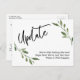 The front features a graphic header I designed using a modern, casual handwriting font, that reads "Update". Lower, there is a cheerful message you can edit, which declares your news: "We're Still Getting Married! Right Now We're Just Not Sure When it Will Happen." Accented with two watercolor sprigs of greenery, all layers were added separately and left unlocked to give you maximum design control. Use the template fields to add your personal details and change any of my draught wording to suit your needs and situation.