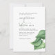 Minimal and elegant wedding invitation features leafy greenery and a beautiful ampersand, with a simple white back.
