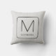 Simple Grey and Black Modern Monogram Throw Pillow.