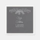 Embrace a sense of natural tranquillity with this minimalist and modern napkin The clean, centred layout is adorned with a delicate white line drawing of eucalyptus leaves with a simple grey background, symbolising lasting love and growth. It's an elegant and balanced design for couples who appreciate refined, nature-inspired details. This wedding napkin is part of a complete set.